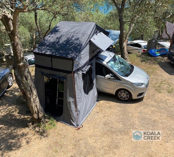 Deze ondertent is speciaal gemaakt voor gebruik onder het TEIDE 190L model. Hiermee bouw je onder de daktent een grote dichte ruimte met een grondoppervlakte van ca. 250 x 220 cm. Dus groot genoeg voor bijvoorbeeld 2 extra slaapplekken, je huisdier of een droog verblijf bij minder goed weer.